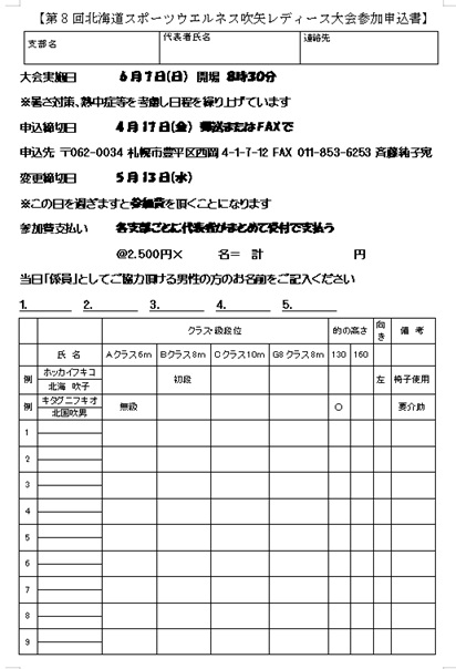 申込書送付先 007-0815 札幌市東区東苗穂15条3丁目6-5 工藤 清司