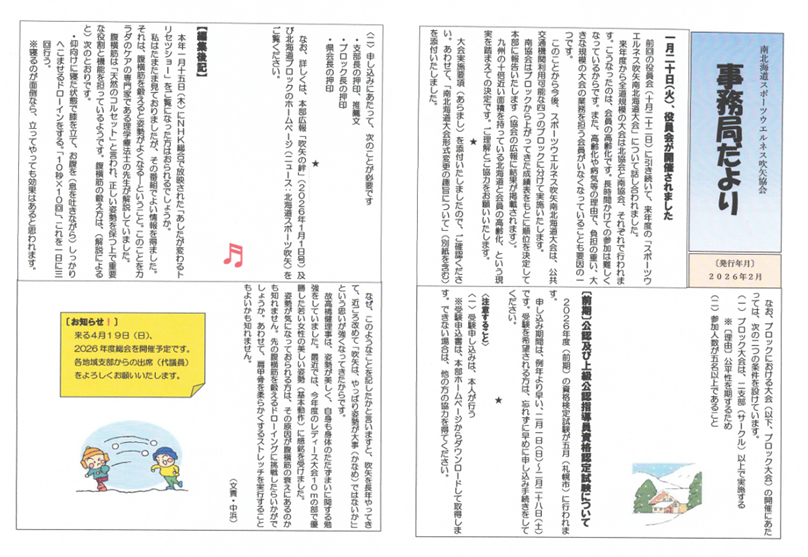 「南北海道協会事務局だより」が発行されました
