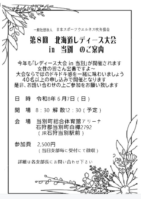 6月7日(日)第8回レディース大会 in 当別が開催されます