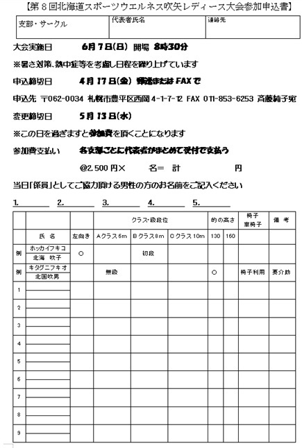 *参加希望者は別紙の参加申込書を、4月31日締め切りで工藤ブロック長まで送付してください。